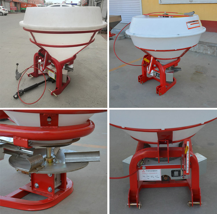 पावर इनपुट: ट्रैक्टर के रियर आउटपुट ट्रांसमिशन शाफ्ट के माध्यम से उर्वरक फैलने वाली मशीन के गियरबॉक्स से जुड़ा हुआ है, यह चेन व्हील ग्रुप को एक्सरिंग ऑगर बनाने के लिए ड्राइव करता है और उर्वरक फैलने वाला डिस्क रोटेट सिंक्रोनस रूप से घूमता है।