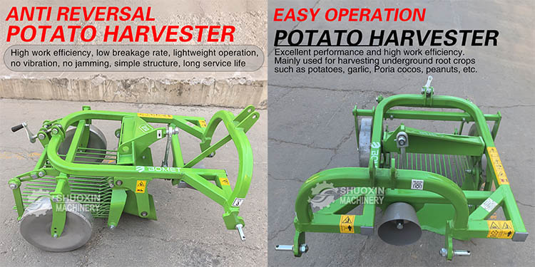 एकीकृत खुदाई उपकरण खुदाई की गहराई की सटीकता सुनिश्चित करता है, जबकि फ्लोटिंग कटर को खरपतवारों को प्रभावी ढंग से काटने और खुदाई प्रतिरोध को कम करने के लिए डिज़ाइन किया गया है। यह छोटे ट्रैक्टरों के लिए अत्यधिक उपयुक्त है और बिना किसी नुकसान के मिट्टी से आलू को धीरे से निकाल सकता है। यह छोटे स्तर के उत्पादकों के लिए विशेष रूप से उपयुक्त है।